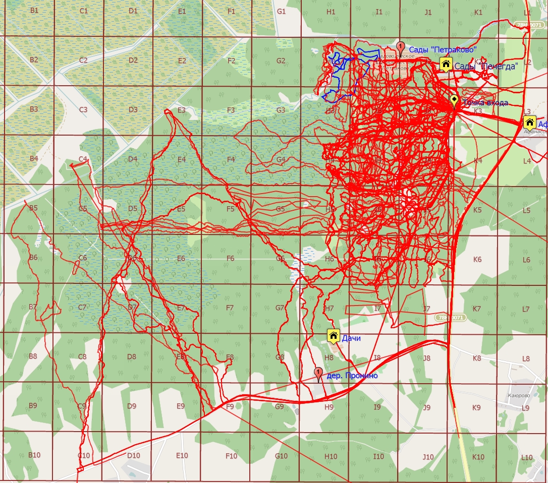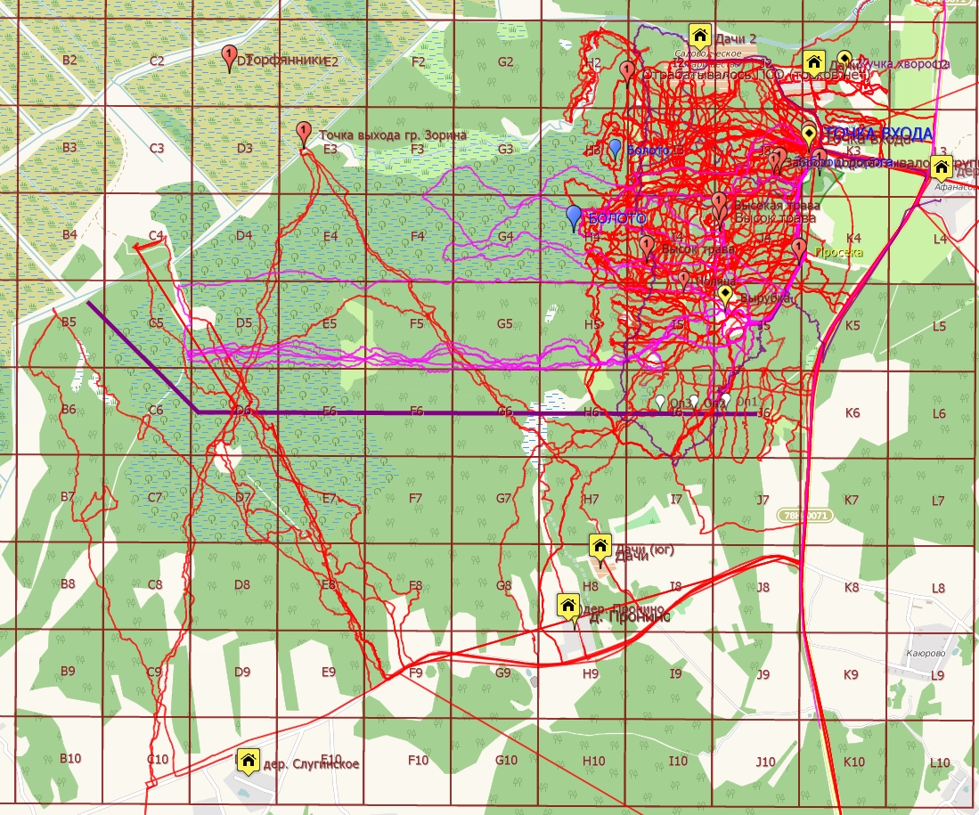Wins, Точнее I2 и H2. В самой северной части квадрата H3 упёрлись в стену высоченной травы,поняли что пройти её сегодня мы не в состоянии,повернули обратно-прочёс квадратов H3 и H4 планируем на следующие выходные.Для прочёса нужны люди-по 3-4 неподготовленных человека туда идти очень опасно