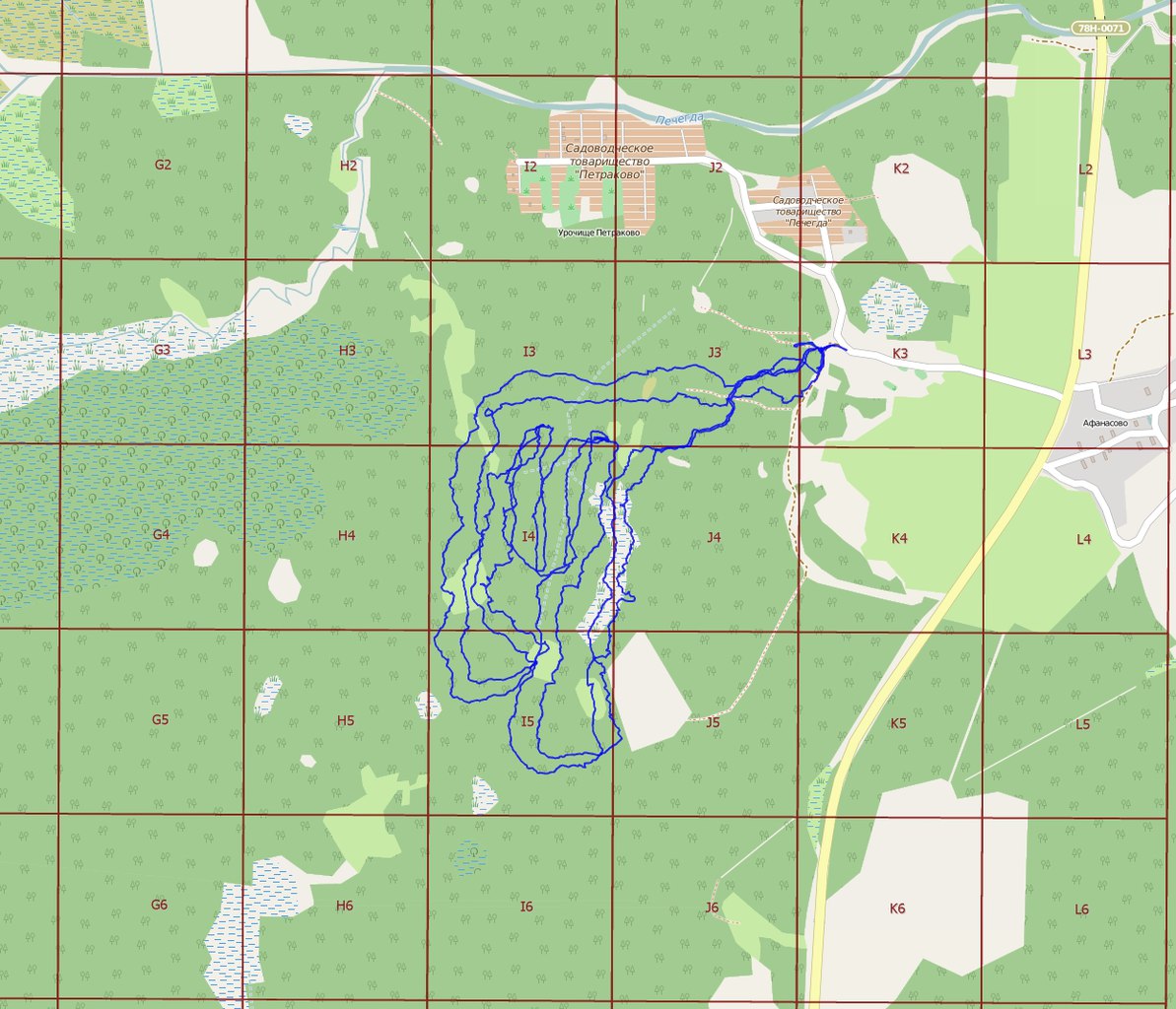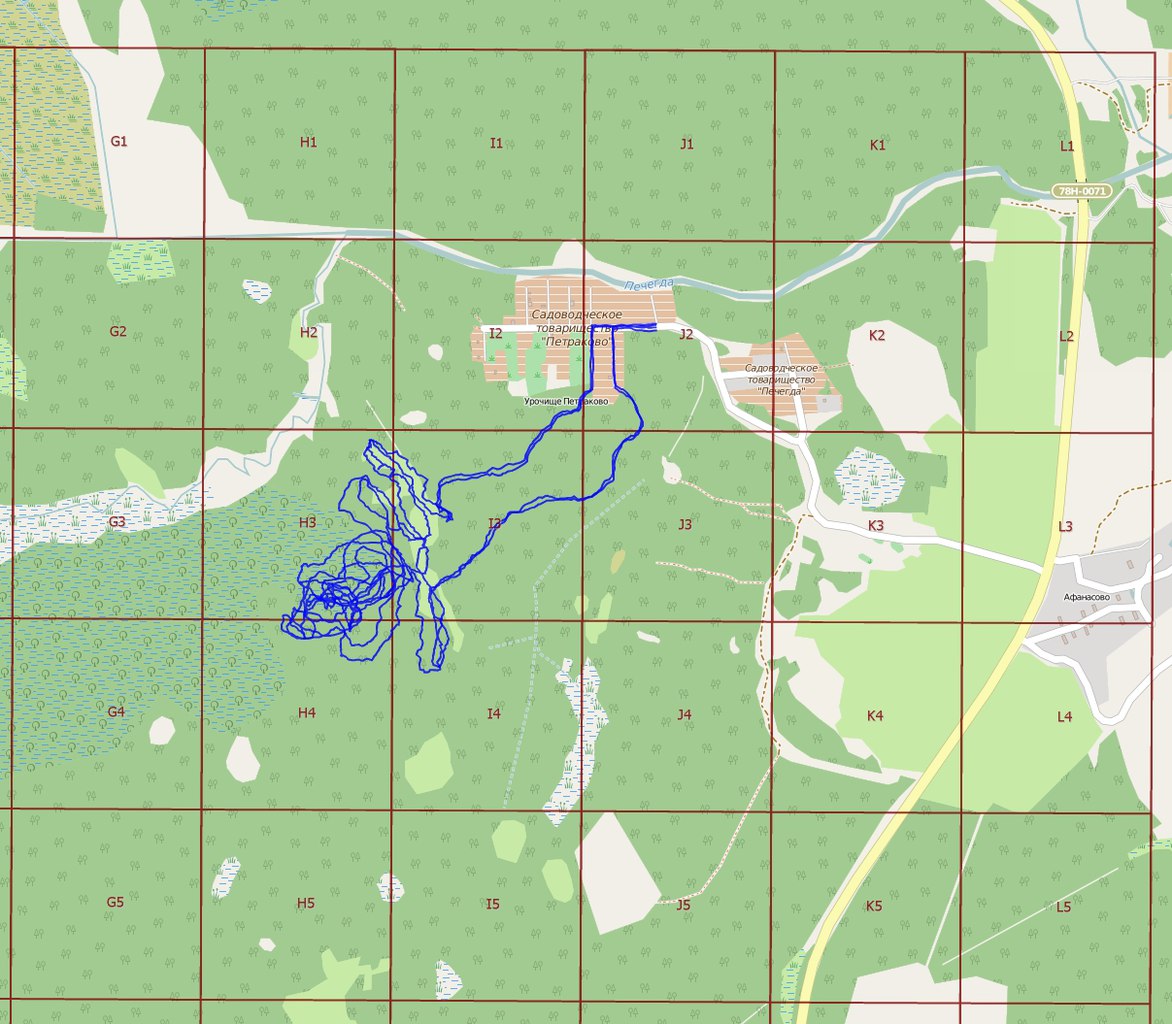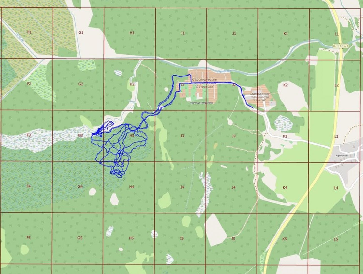Отрабатывали квадрат G-3. В начале, когда писали двумя навигаторам, видно, что прочес очень плотный. Но не смотря на это оставались пробелы. Вдоль южного берега реки идет примерно 50-и метровая полоса очень высокой травы. Закрыть ее на 100% можно только сплошным прочесом. Потом начинается непролазный ивняк, метров 30. Затем крапива и далее более-менее проходимый лес с торфяными лужами. Они вязкие, но не топкие. Глубина примерно 30 см. Можно застрять в них, но не утонуть. Квадрат закрыли почти весь. Но 100% уверенности у меня нет. К сожалению мы не можем понять, что имелось в виду под словом болото. Потому под описание подходит практически любой квадрат вдоль реки... Единственный вариант: продолжать чесать...