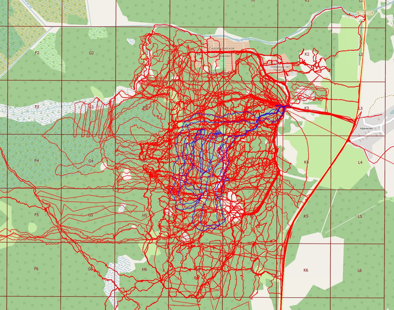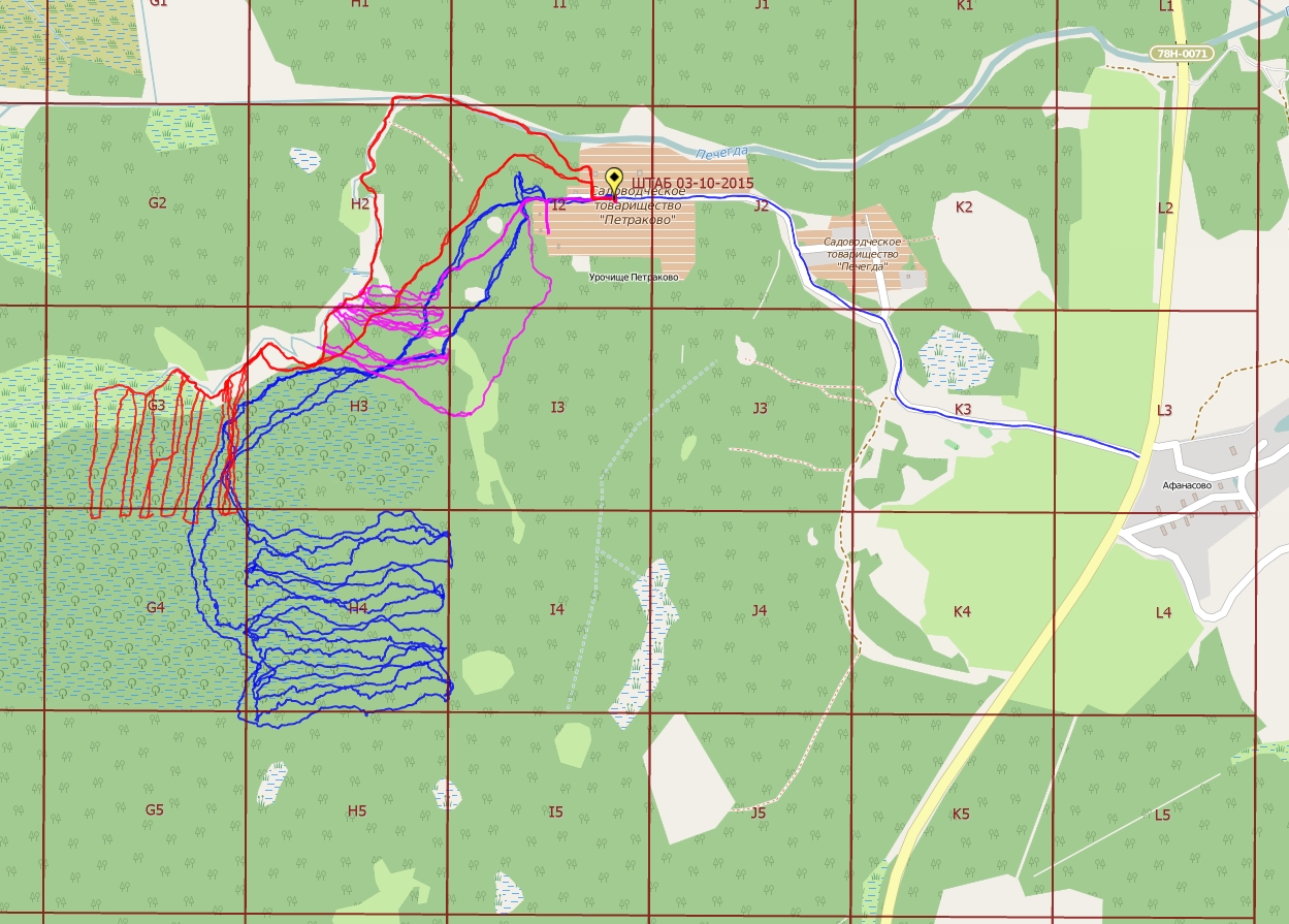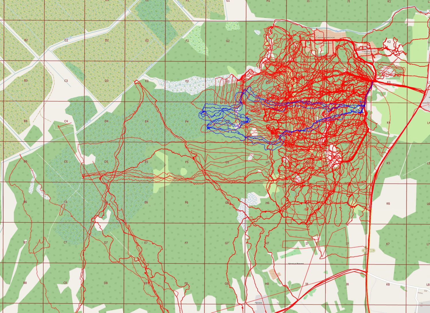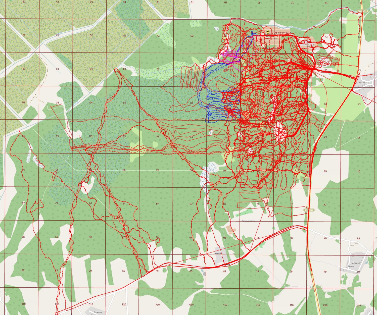 Отрабатывали квадрат G-3. В начале, когда писали двумя навигаторам, видно, что прочес очень плотный. Но не смотря на это оставались пробелы. Вдоль южного берега реки идет примерно 50-и метровая полоса очень высокой травы. Закрыть ее на 100% можно только сплошным прочесом. Потом начинается непролазный ивняк, метров 30. Затем крапива и далее более-менее проходимый лес с торфяными лужами. Они вязкие, но не топкие. Глубина примерно 30 см. Можно застрять в них, но не утонуть. Квадрат закрыли почти весь. Но 100% уверенности у меня нет. К сожалению мы не можем понять, что имелось в виду под словом болото. Потому под описание подходит практически любой квадрат вдоль реки... Единственный вариант: продолжать чесать...