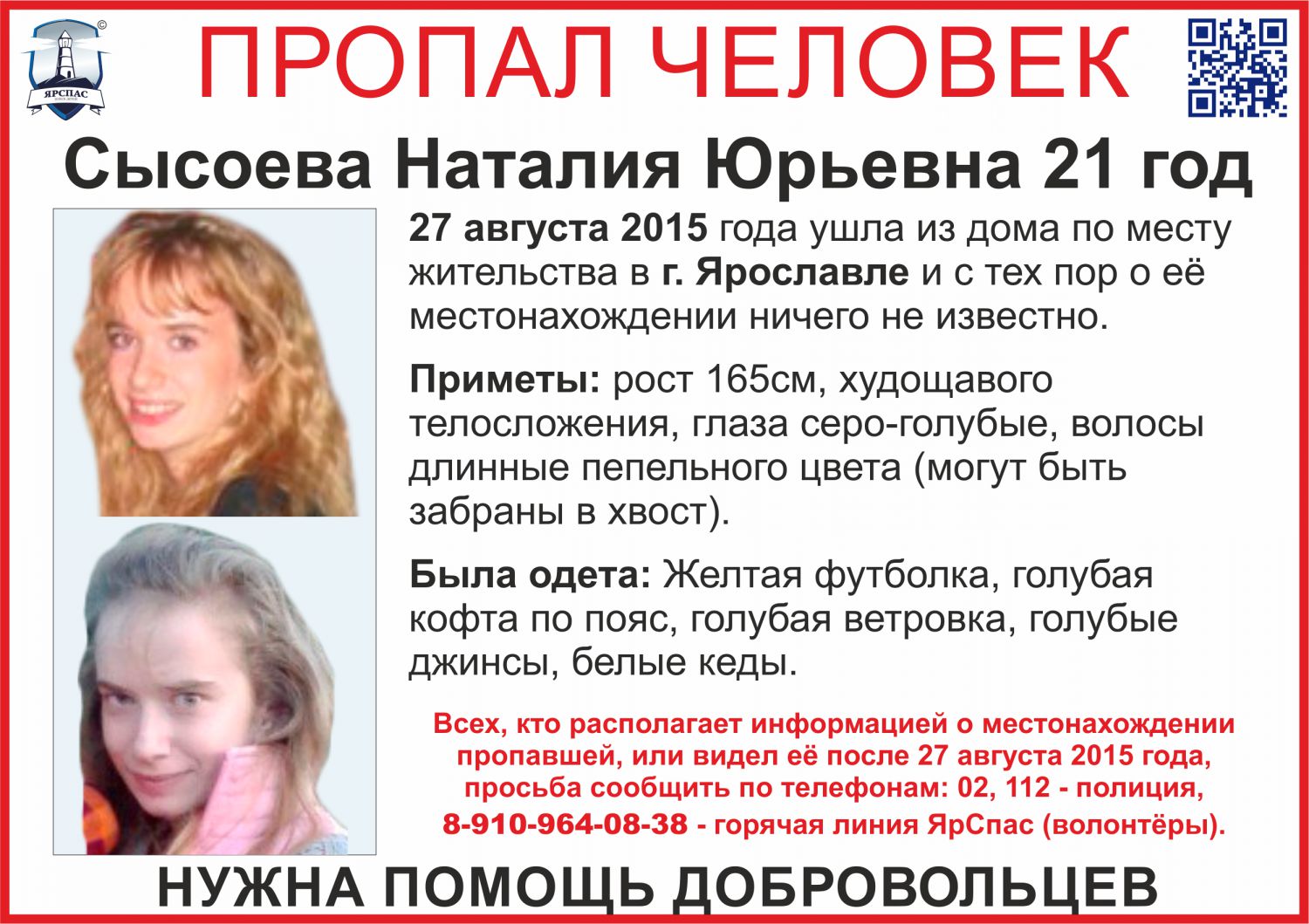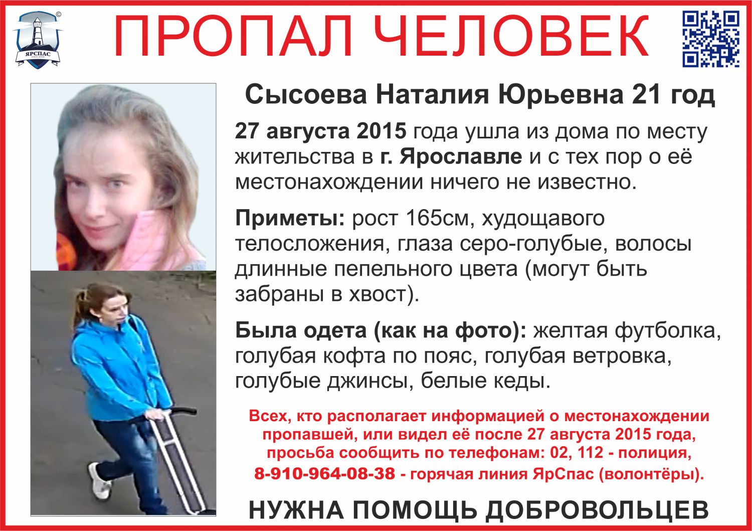 По поиску Натальи Сысоевой необходимо распространение ориентировок - по всем большим транспортном узлам. Ориентировки можно забрать у меня, списавшись в ВК или созвонившись по телефону 8920651341Ч (после 14 часов в любой день). За печать ориентировок на Наталью ОГРОМНОЕ СПАСИБО типографии Рек-Арт!