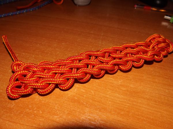 На мое запястье трех с половиной метров не хватило, отдала довольному сыну. По плотности готового изделия предполагаю, что ручка будет не слишком комфортной, а вот какой-нибудь чехол под нож - вполне. В общем, на ручку надо что-то а) мягче, б) тоньше.