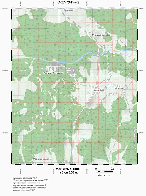 Вот такой вариант карты для командиров поисковых групп и координатора поиска. Изображение местности взял из SAS-Planet, рамка и надписи нанесены в ГИС MapInfo 15.0, километровая и двухсотметровая сетка нанесена в Ozi Explorer 3.95.p. Карта откалибрована в формате *map. При печати занимает 4 листа формата А4.