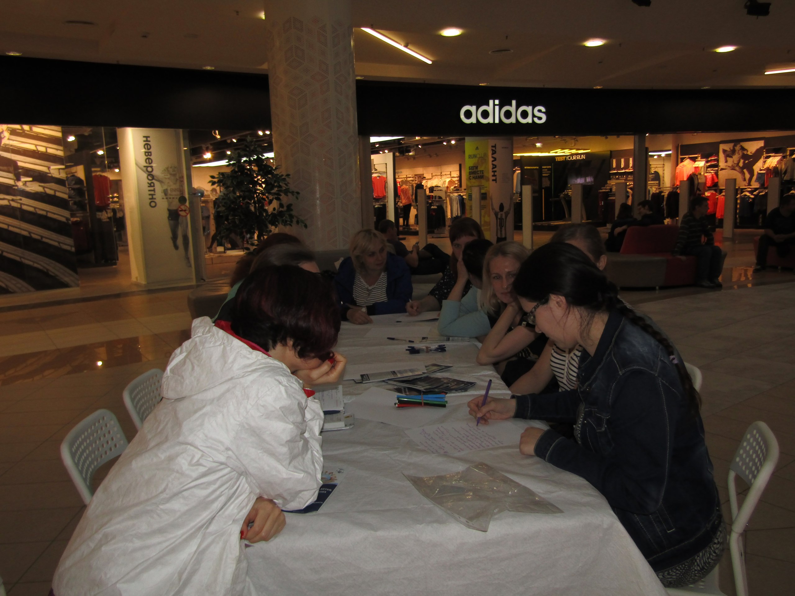 К сожалению, майская погода непредсказуема и КПД наших акций зависел от нее напрямую. Солнце и тепло – у нас кворум, дождь – и мы на набережной почти в одиночестве. В этом году было принято решение провести акцию в помещении. Навстречу нам пошел ТРЦ «Аура». Там и была проведена акция в этом году.